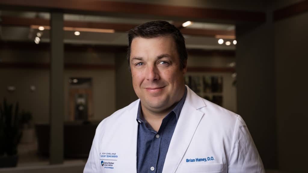 After that, he entered the Army, and completed his residency and fellowship training at San Antonio Military Medical Center. He served as a staff oncologist in the military from 2013 (including a deployment to Afghanistan in 2014) until joining New England Cancer Specialists in July 2017. While in the military, Dr. Haney was involved in several large lung cancer research studies, and served as the associate program director for the hematology/oncology fellowship program at San Antonio Military Medical Center, beginning in July 2015.